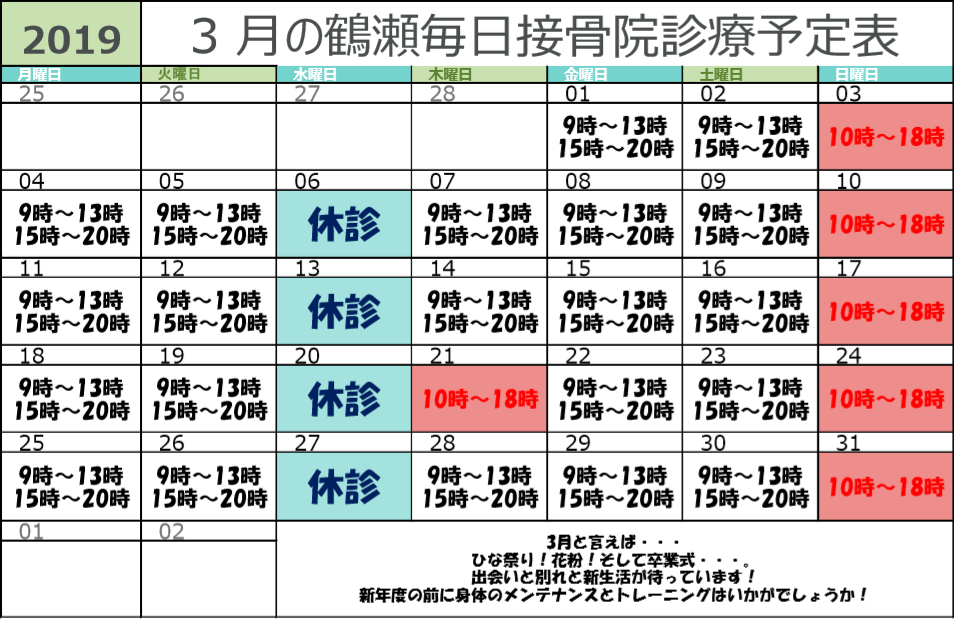 3月の診療予定表になります♪